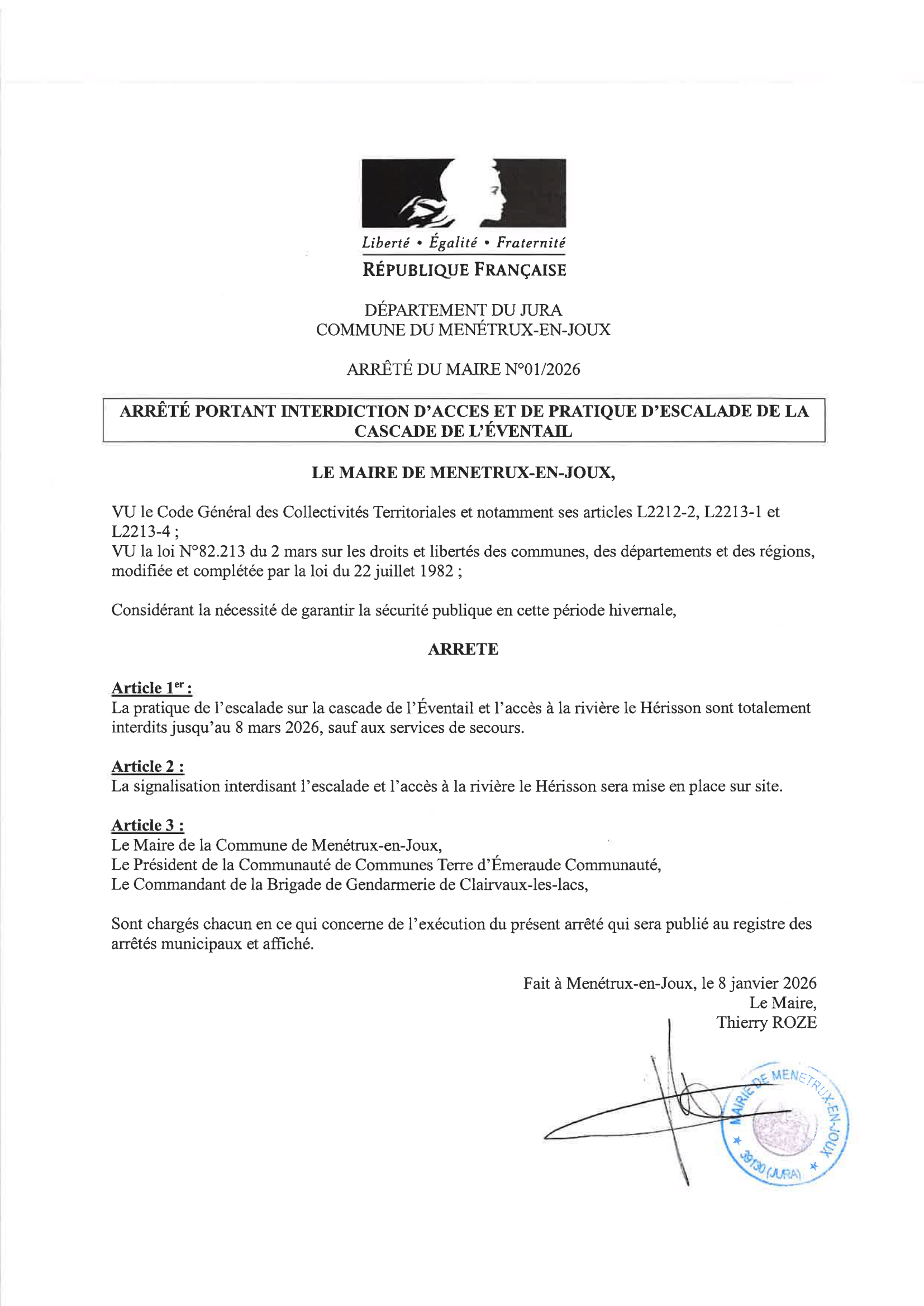 ⚠️ Interdiction d'escalade de la cascade de l'Éventail - Accès et randonnée déconseillés aux Cascades du Hérisson -⚠️
